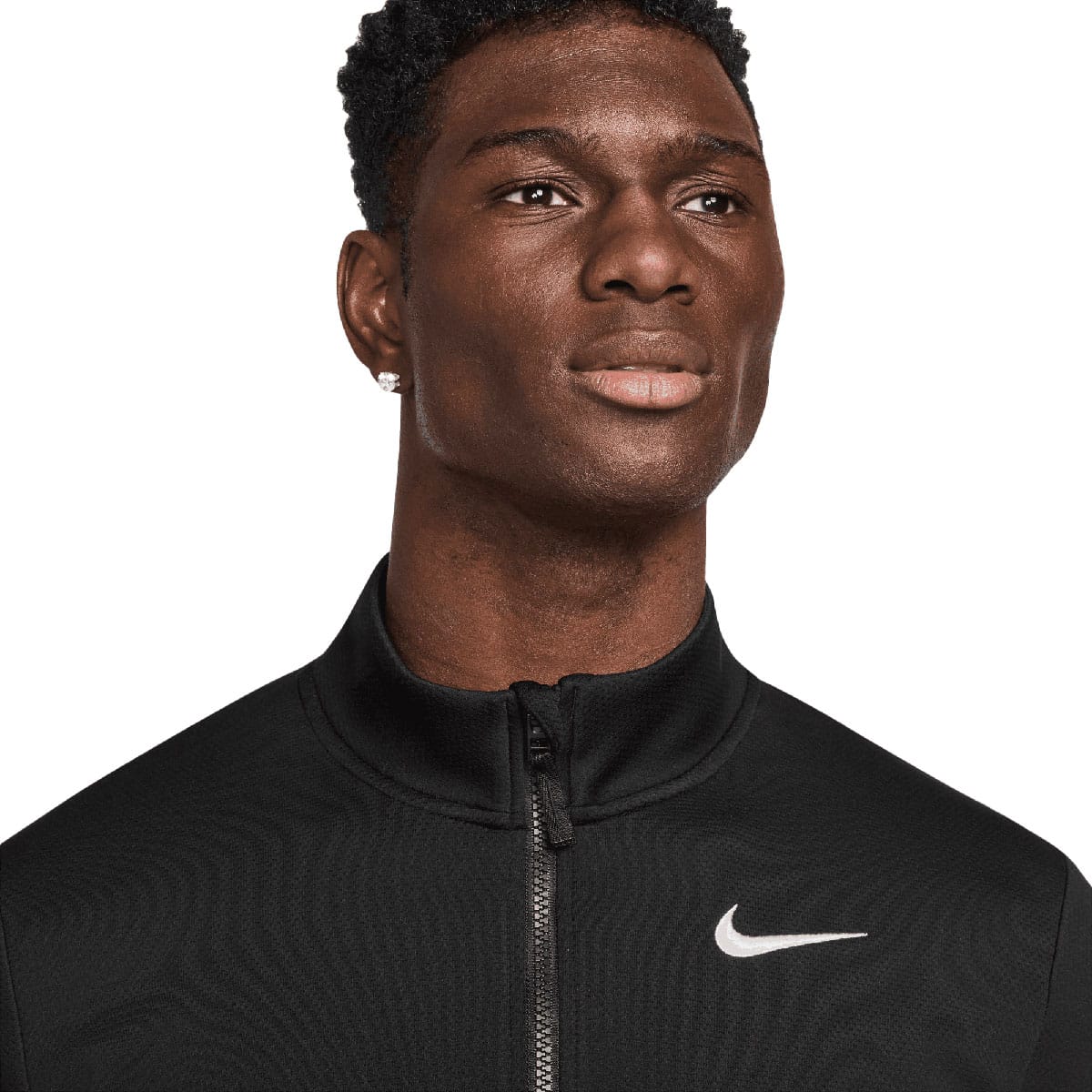 The Nike Golf Therma Flex Mid-Layer is your go-to for unpredictable weather. Its smooth, stretch-knit fabric wicks away sweat, while Therma Flex technology traps body heat to keep you warm. High-stretch yarns move with you for unrestricted play, and the classic fit with a 1/2-zip design offers easy adjustability on the course