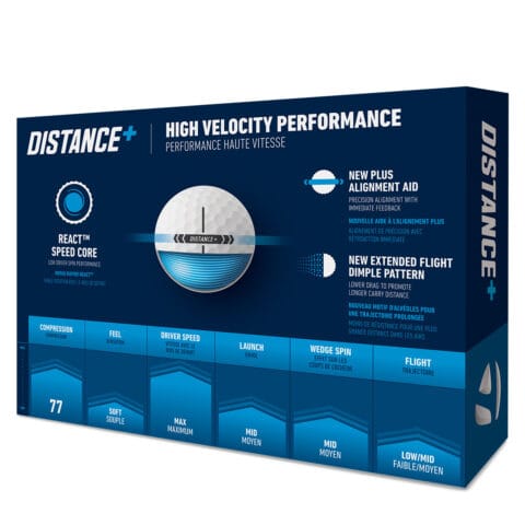 The TaylorMade Distance+ Golf Balls are designed for golfers seeking explosive distance and a responsive feel. Engineered with a high-speed core and aerodynamic dimple pattern, these balls deliver maximum velocity and low drag for longer, straighter shots.